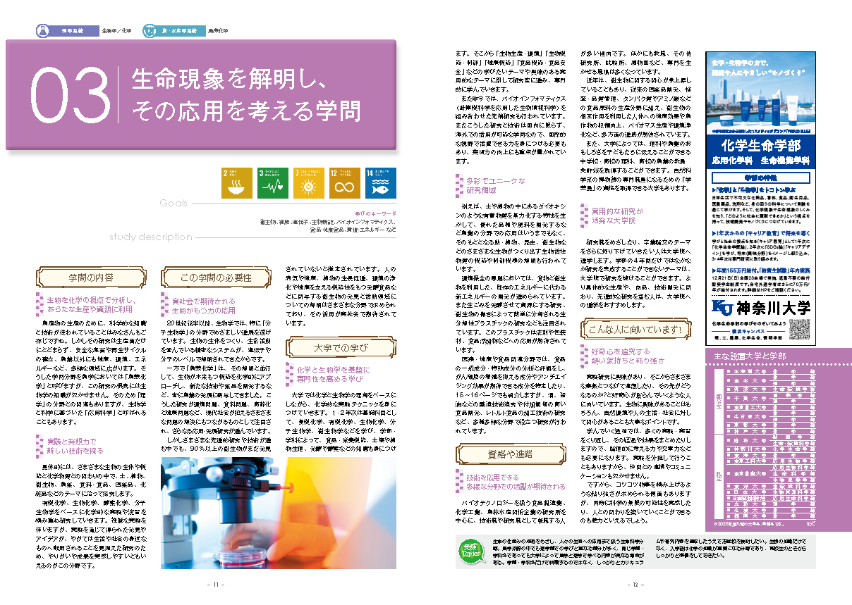 そうした学問分野を「農芸化学」と呼びますが、この研究の根底には生物学の知識が欠かせません。そのため「理学」の分野との関連もありますが、生物学と科学に基づいた「応用科学」と呼ばれることもあります。