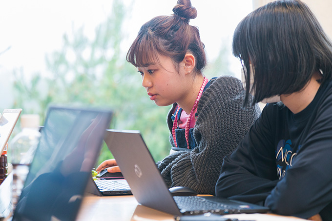 また、同校では他学科・地域・企業・海外・大学などとコラボレーションした学びが特長だ。合同ゼミやイベントで他学科の学生と協同する学び、地域や企業・自治体と連携したプロジェクト型の授業、海外姉妹提携校の学生との国際交流など、豊かな経験を積むことができる。