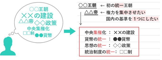 英語に限らず暗記科目では、単語帳をつくっておき、自分が覚えていない用語や単語だけ後で見返せる工夫をしておくと、それをそのまま受験勉強に活用できる。また、歴史に限らず、各単元の全体像をつかむ必要があるケースは、自分が理解していること、理解していないことを見える化しておこう。まとめノートをつくっておくと、その単元を今の自分が理解できているのかを測る指針にもなるし、受験勉強でも役に立つぞ。