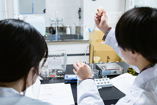 本学では、科学の学びの楽しさを実感でき、学生たちの可能性を伸ばす少人数・実験演習中心の授業を重視しています。