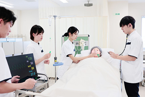 胎児期から老年期までの人間のライフサイクルを理解し、それぞれの時期の健康課題、健康増進、疾病の予防、疾病回復などに対応した看護の知識や技術を学びます。地域の特性を生かしたカリキュラムも設定し、将来、保健・医療・福祉の現場で活躍できる看護専門職者を養成します。