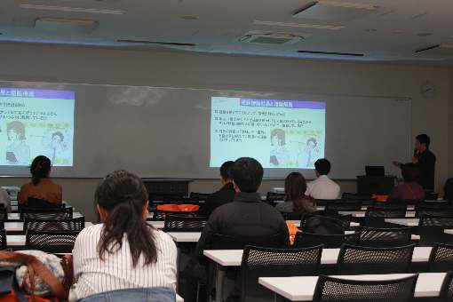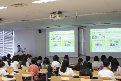 学科説明では学生の体験談も交えながら学科の紹介をします。 -
