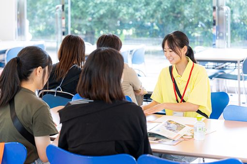 各学科の学生スタッフと自由に会話ができる場所を設けています。大学の様子や学生生活など、なんでも質問してください。学生スタッフが受験生目線で、授業・入試・資格・実習・就職をはじめ、一人暮らし・友人・課外活動・アルバイトについてなど、あなたの疑問にお答えします。
