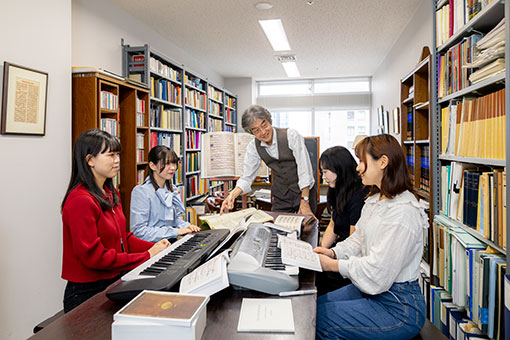 日本語・日本語教育コースでは、日本語学概論Ⅰ・Ⅱ、日本語史Ⅰ・Ⅱ、日本語学講読Ⅰ・Ⅱ、日本語教育概論Ⅰ・Ⅱ、日本語教授法Ⅰ・Ⅱ、特別演習(卒業論文)など。