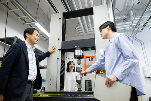 【材料力学および機械材料分野】十分な強度を有する機械や構造物を設計・製作するため、(1)各部材における変形や内力の解析(2)各種材料の力学特性や強度特性(3)機械や構造物の設計指標などについて学びます。