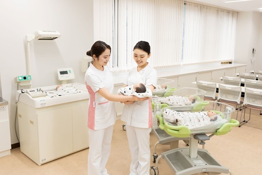 母性・小児看護学関連の演習を行います。妊婦・産婦および産後の女性と新生児から思春期の子どもまで、エビデンスを基に看護技術を学びます。