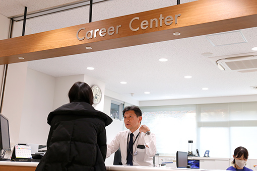 キャリアセンターでは一人ひとりが万全の体制で就職活動に臨めるよう、エントリーシートや面接対策、各種ガイダンスを実施。薬学部99.7%・生命科学部99.1%(2025年3月31日現在)という高い就職・進路決定率を実現しています。