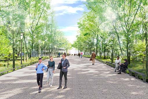 新学部設置、学科再編、新校舎建設により、川越キャンパスは「Smart Green Campus」へと生まれ変わります。現在、キャンパス全体を一つのコミュニティとして捉えるリデザイン(再構築)を進め、2027年4月に開設を予定している環境イノベーション学部(*仮称・設置構想中)、理工学部、総合情報学部の3学部が協働し、教育・研究・地域連携を通じて、新たな価値を創出。新しい科学を追究する“こもれびの森のキャンパス”として、自然豊かな「こもれびの森」の中で、持続可能な未来づくりに挑戦する、技術と自然が調和した環境が整い「Smart Green Campus」へと生まれ変わります。