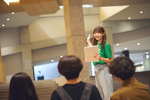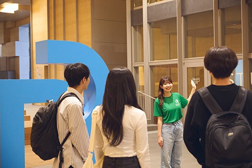 来校型オープンキャンパスでは、学生スタッフがキャンパスをご案内します。また、オープンキャンパスサイトの常設コンテンツとして、キャンパス案内の360度動画を公開中。ぜひご覧ください。