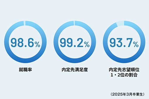 - 卒業生の内定先満足度99.2%(大学調べ)