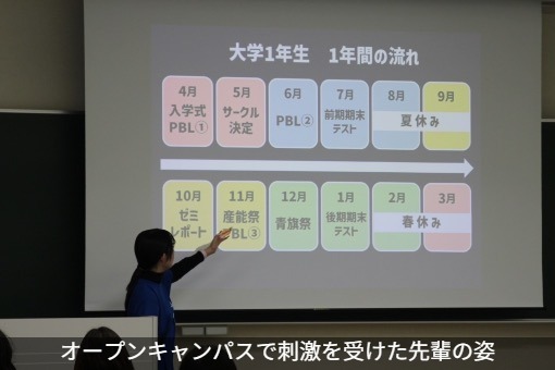 また、オープンキャンパススタッフとして活動しており、高校生に進路選択における最良のお手伝いをするために日々活動しています。チーム全体が高校生に寄り添った対応をするために、主体的に準備に励んでいるところが、自分ももっと頑張ろうと思うことができ、切磋琢磨しながら日々活動ができています。