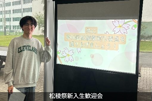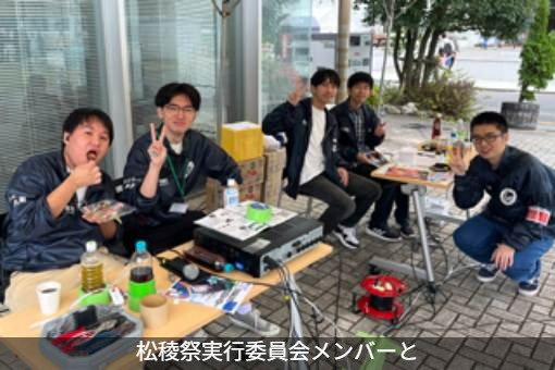 また、課外活動では大学祭の運営を行う、松稜祭実行委員会に所属していて、現在は委員長を務めています。実行委員会に入るきっかけは入学当初にCC(コミュニケーションサークル)制度※を通して仲良くなった友人の紹介です。ほかのメンバーも、CC制度で知り合ったメンバー同士で、一緒に入ってきた人が多いです。現在、多くの友人がいるのは大学の制度のおかげかなと思います。