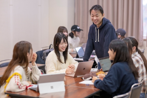 学生一人ひとりに目が届く少人数教育を実施。安心して学びに向き合える環境です。授業では発言や意見交換の機会が多く、教員や仲間からのフィードバックを受けながら、自分の考えを深めていくことができます。専任教員が継続的に学びと学生生活を支えるアカデミック・アドバイザーとして、履修相談や学修上の不安、進路についても学生の状況を把握し、支援します。学修支援やキャリア支援など小規模大学ならではの「放っておかれない」サポートがあります。学生同士が互いの違いを認め合いながら、ともに成長していけることがフェリスの少人数教育の大きな魅力です。
