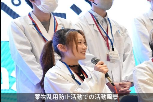 授業の一環で薬物乱用防止活動に取り組んでいます。この活動は、新潟薬科大生が主体となって、私たちの目線とアイデアで、若年層に対する効果的な薬物乱用防止啓発方法を検討・実施するものです。具体的には、薬物乱用防止かるたや、啓発を目的としたラップ動画を制作しています。これらの制作物では対象の若年層にわかりやすく、楽しみながら学んでもらうための様々な工夫を凝らしています。この活動により創造力や発信力が身についていると感じます。