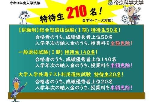 【併願制】総合型選抜試験(Ⅰ期)、一般選抜試験(Ⅰ期)および大学入学共通テスト利用選抜試験の合格者のうち、学部・学科(コース)を問わず、下記に該当する方を特待生とします。