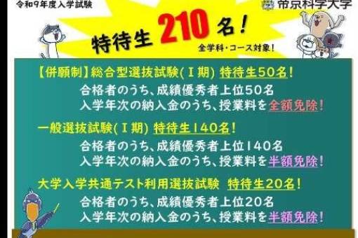 【併願制】総合型選抜試験(Ⅰ期)、一般選抜試験(Ⅰ期)および大学入学共通テスト利用選抜試験の合格者のうち、学部・学科(コース)を問わず、下記に該当する方を特待生とします。