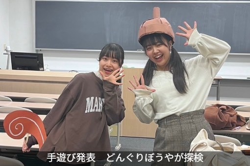 大学では知識を学ぶことに加え、現在は保護者対応のデモンストレーションや模擬保育などを通して実践的な力を身に付けています。特に、模擬保育では、保育の流れや安全性などを保育者として注意した実践を行うことはもちろん、自分が子ども役になることで、その保育の楽しさの本質が分かったり、つまずいている部分をお互いに指摘し合うことで解消できたり、とても力になっています。今度は、自分の好きな身体表現を通して子ども発達と関わらせた研究をしようと考えています。