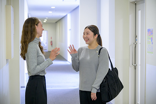 椙山女学園大学の外国語学部は、生きた英語を学べると知ったことが大きいです。1年次からネイティブの先生によるオールイングリッシュで学ぶ語学の授業が毎日あります。レベル分けされた少人数のクラスなので安心して楽しく学んでいます。また、学部内には「Global Language Lounge(GLL)」というスペースがあり、ここでのコミュニケーションは外国語オンリーなので、スピーキングやリスニングを高めることができる、魅力的な環境だと感じました。