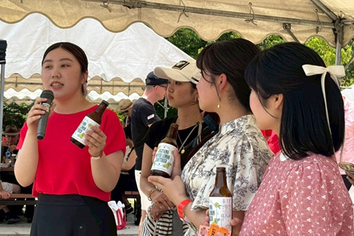 また、外国語学部の学生が中心となって活動している「椙山クラフトビールプロジェクト」にも参加しています。ブルワリー(ビールの醸造所)と連携して、女性が本気で飲みたいビールの商品開発をする取り組みです。うれしいことにカナダ建国イベント「カナダデー・パーティ」で、私たちのつくったビールが乾杯のドリンクとして採用されました。当日、ビールをアピールする時間では、カナダ領事をはじめとする関係者の前で、英語でスピーチをする貴重な経験をしました。ブルワリーの経営者など、学外の方と関わる機会も増え、社会とつながっていることを感じています。これからも留学をはじめさまざまなことに挑戦して、視野を広げていきたいです。