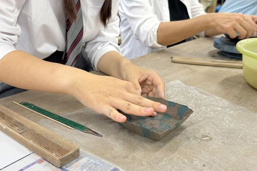 日本画の画材を使って絵を描く体験をしました。岩絵の具が沢山並んだ棚から好きな色を選ばせてもらえた事や、岩絵の具の使い方を教えてもらえた事、自由に道具を使わせてもらえた事など、リアルな体験ができて感動しました。