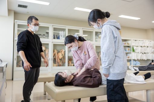 教室で学んだ知識と技術を統合し、総合的な実践力を養う臨床実習。2年次の春学期から開講され、入門的なものから専門的・個別的なものへと、学修進度に合わせて効果的に配置されています。
