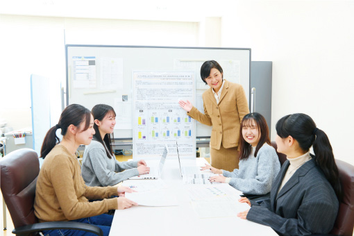 商品開発をはじめ調理・製菓・カフェなどの多彩な実習、3つの領域(食品メーカー・食品流通・フードサービス)による専門性を高めた実践的な学びが、食品メーカーなど食品関連業界への高い就職実績に結び付いています。また、「商品開発マーケティング」「食とデザイン」「食空間プロデュース」「食と環境」「フードサイエンス」の5つの領域で即戦力となる人材を育成する「フードビジネスマイスター」認定で、より実践的な学びへと進化しています。