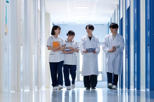 看護学部 看護学科では、人間への理解を深めながら、医療・看護の知識を学ぶ多彩な授業と1年次から始まる臨地実習との相乗効果により、患者さんの心に寄り添う感性や倫理観、あらゆる疾病に対応できる看護の知識と技術を体験的に修得。さらに公衆衛生学やチームケア論など、地域住民の健康維持・増進や異なった専門領域を持つ者が連携・協働し合うチーム医療につながる知識も深く学び、多角的に人々の健康に寄与できる看護師の養成をめざします。