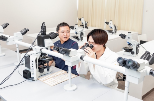 また、「臨床検査学科」では、中部地方初となる「細胞検査士」コース(選抜制)を設置、「臨床検査技師」と「細胞検査士」のダブルライセンス取得も可能です。