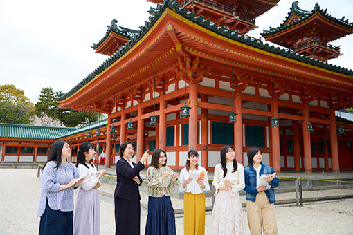 地下鉄「北大路」駅徒歩0分というアクセスの良さを生かし、大谷大学ではフィールドワークを中心とした授業が豊富にあります。歴史学科では、祇園祭や葵祭などの年中行事や二条城などの史跡を実際に訪れ、受け継がれてきた”歴史”をリアルに感じることができます。また、真宗学科ではハワイ州にある真宗の開教現場を訪れ、仏教や真宗の開教活動に携わっている方との交流などを通して、アメリカでの真宗の現状を知ることができます。