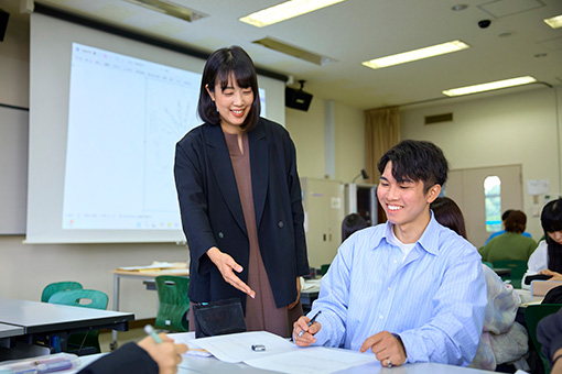 授業全体の約74%が40名以下(2024年度実績)という少人数教育を生かし、学生一人ひとりにアドバイザー教員がつく「アドバイザー制度」を導入。高校までの担任のように、気軽に相談できる体制を整えています。また、先輩学生によるサポートも充実。「CLA(Campus Life Adviser)」は入学前スクーリングの運営など不安や悩みのケアを行っているほか、「ラーニングサポートデスク」は研修を受けた先輩学生がレポートの書き方など学修面を支援。より自主性が求められる大学生活をスムーズに進められるサポートをしています。