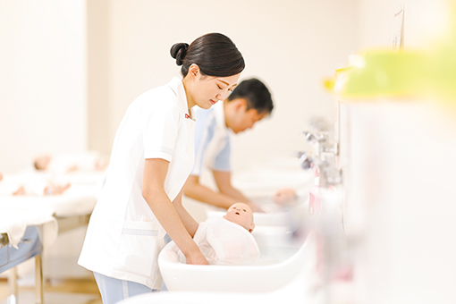 専門知識と技術を磨き、看護の実践力が身につくカリキュラム。学内での学びと病院などでの実習を繰り返すことによって看護の理解を深めます。また豊かな人間性やチーム医療の一員として、連携・協働する力も養います。