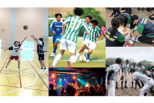 軽音楽部、ライフサポート部、準硬式野球部、茶道部、ボランティアサークル、アコースティック音楽サークル、ハンドボールサークル