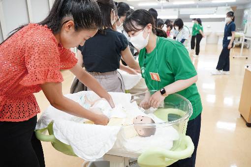 看護学科学生がレクチャー!新生児の人形を使って看護を体験 -