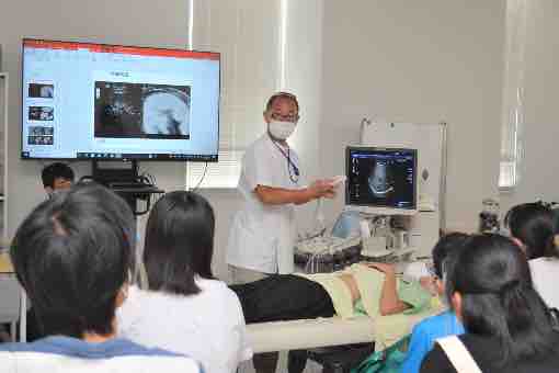 教員によるエコー検査の実践でプロフェッショナルの技術を体感! -