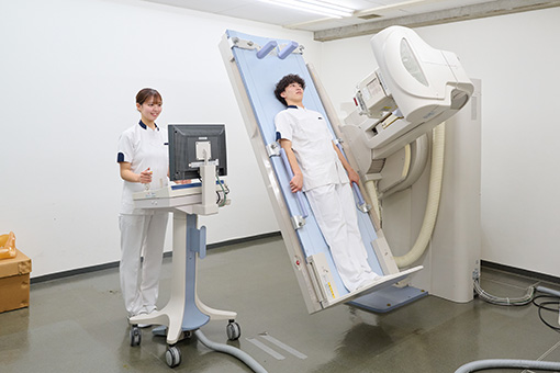 診療放射線技師としての臨床経験豊富な教授陣が中心となって講義・実習を行います。技術の確かさに加え、医療現場でのコミュニケーションの大切さをよく認識しています。医師だけでなくコメディカル(医療従事者)が協力し合う「チーム医療」が重視される現代において、診療放射線技師として備えるべき高い専門性に基づく柔軟な対応力と人間力を共に身に付け、次世代を担う医療プロフェッショナルを育成します。