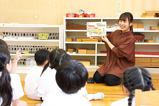 本学の広大なキャンパス内には認定こども園、小学校があり、園児や児童と日常的に交流することができます。2年次後期からは、同認定こども園や小学校で行われる「教職インターンシップ」への参加が可能。授業や学校活動などを実際に体験し、教員の仕事を間近で観察しながら、教育・保育の実践力を磨きます。