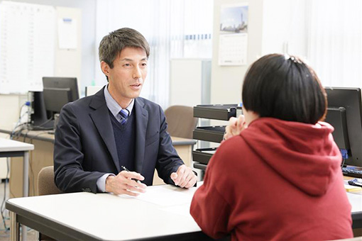 また、学生一人ひとりの可能性を引き出し、適性と希望に合った就職内定を得るために、キャリアセンターのスタッフが教員と連携を取りながらマンツーマンで指導しています。
