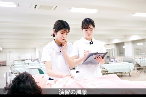 健康科学部看護医療学科で看護の勉強をしています。1、2年次の演習では看護師役と患者役に分かれてから、実習服を着て血圧の測定や聴診などの基礎的な事を練習していきます。この大学では、先輩が一緒に練習を見てくださるので、わからないことは直ぐに聞けて、安心して取り組むことができました。そして、基礎的な技術を身に付け、3年次の夏から約半年程病院実習へ行き今までの知識をより深めることができます。