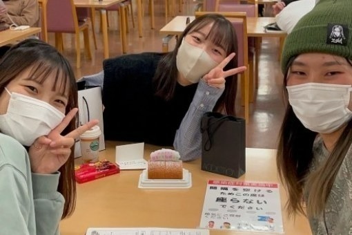 大学の付近に商業施設や飲食店があるため、空きコマには、友達とご飯を食べに行くことやお菓子を買って食堂で過ごすなど、楽しい時間を過ごすことができます。