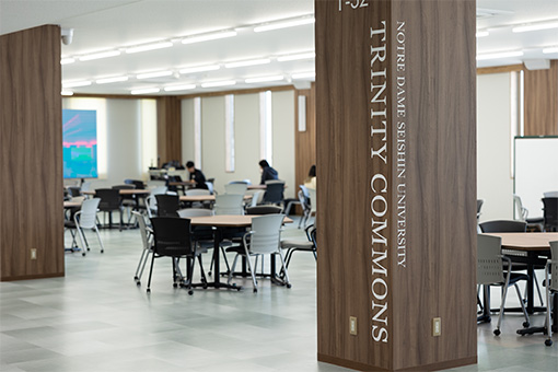 トリニティホールは、情報化に対応した新しい施設や設備を持ち、学生のニーズ(食事・自習スペースや憩いの場所等の増設)を可能な限り反映しました。