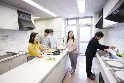 また、「レジデントアシスタント(RA)」として最大4人の学生が共に生活をしています。RAは留学生が過ごしやすい環境を整えることはもちろん、学生生活や文化・生活価値観の違いに悩む外国人学生の相談に乗り、アドバイスすることもあります。また、インターナショナルハウスで定期的に行うイベントの企画や運営にも携わり、留学生と地域の方々をつなぐ役割も果たしています。さまざまな国の留学生とひとつ屋根の下で生活し、交流を深めることで、日本にいながら国際感覚が身に付きます。