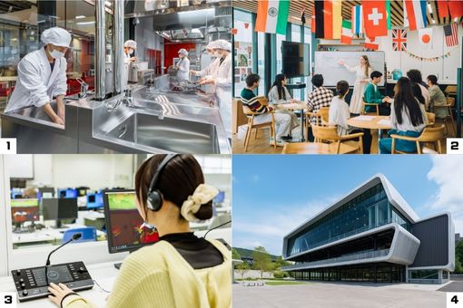 主に健康栄養学科の学生が使用する教育施設。アメリカのNASAで考案された合理的な衛生管理手法「HACCP(ハサップ)」を導入した「給食経営管理実習室」では、最新式の調理器具を使って100名規模の調理実習を行います。また、3階には教育学科の学生が使用する保育実習室等や図工室も併設しています。