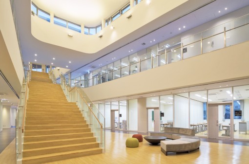 教職課程の学修には、教員と学生、学生同士のコミュニケーションと協働を高めることをめざして、教員の研究室とゼミ室を隣接。ゼミ室は、授業以外にもグループ学修ができる環境です。学修を通して生じた疑問点等に隣接する研究室の教員と一緒に取り組みながら、学修を深めることができます。校舎屋上の文教ガーデンは、可部の街が一望できるとても眺めのよい場所です。勉強の合間のリラクゼーション空間としても利用されています。