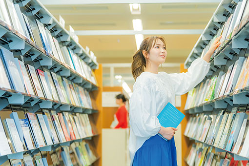 約100万冊の蔵書を持つ図書館は中・四国地区の私立大学で最大規模を誇ります。法・政治情報に関する豊富な判例集やオンラインデータベースなどが整備されています。教員が授業に関して必読と指定した書籍が集められたフロアや、多数の検索用パソコンなどにより、資料や文献をスムーズに調べることができます。