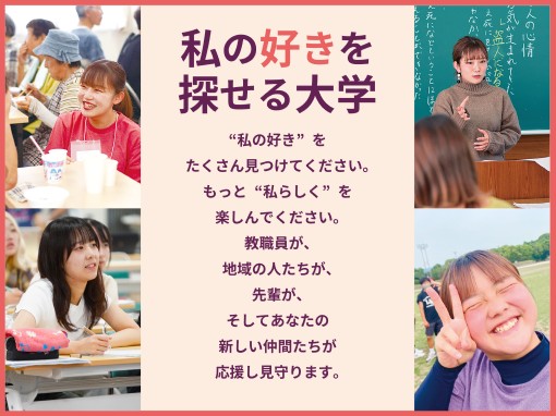 筑紫女学園大学では、様々な取り組みを行っており、学生一人ひとりの「好き」に応えられるよう、教職員や地域の方、先輩や仲間たちが全力で応援していきます。