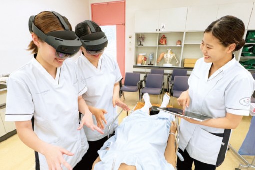 本学の実習棟は、科学的で実践的な看護教育のための専用施設です。病棟や家庭を再現した部屋に、実際の医療現場と同じ機器が揃い、リアルな看護技術を繰り返し練習できます。