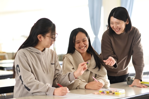 基礎科目のほか、「保育と福祉」「幼児教育の理論」「保育技術」「保育実技」を学ぶ専門科目など、さまざまな科目を幅広く学びます。