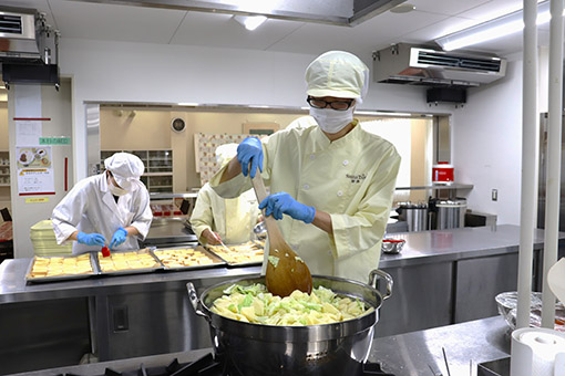 学生は、地域企業でのインターンシップや地域活動に参加し、ビジネスや地域社会の課題解決に取り組むとともに自らのキャリア形成に繋げます。また、食健康コースでは「給食経営管理学外実習」、製菓マイスターコースでは「製菓特別実習」、総合医療事務コースでは病院での実技実習、ビジネスコースでは企業のインターンシップやボランティア活動への参加があり、幼児教育保育学科では、幼稚園、保育所、こども園、施設などで実習を行います。