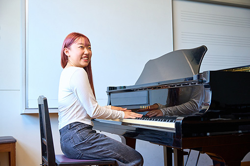 授業の合間や放課後に自由にピアノの練習ができるレッスン室を設置。「もっと練習したい」という学生に開放しています。