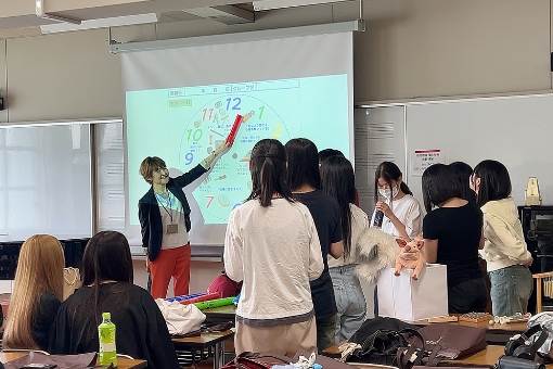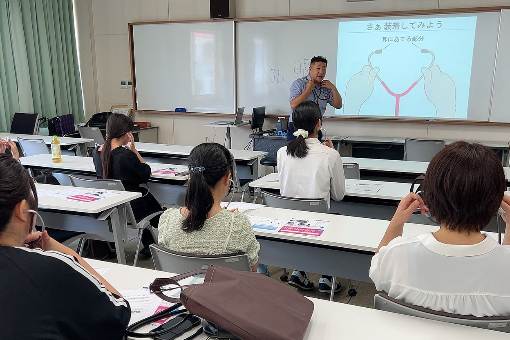 幼児教育保育学科の「手あそび・うたあそび」の体験イベントを通して、子どもたちとの関わり方を学びました。
